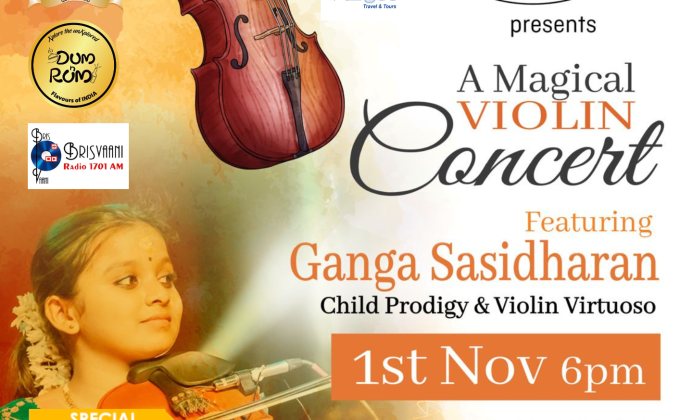 See Upcoming EventsA Magical Violin Concert by Ganga Sasidharan (Fundraiser for Vedanta Centre Brisbane)