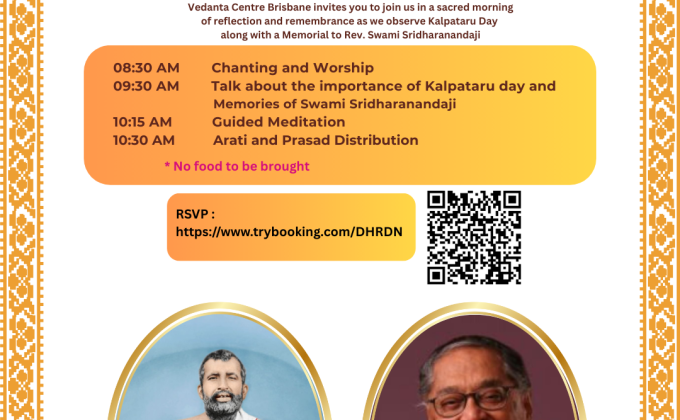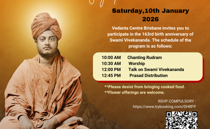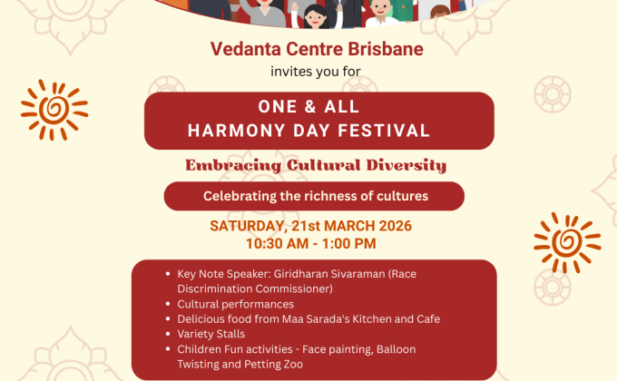 The Vedanta Centre in Springfield Lakes, QLD is a branch of the Ramakrishna Order in India. Our goal is to help one another grow spiritually and to serve the community through benevolent activities like free food relief, activities for children & youth, yoga, meditation, classes on Vedanta, educational workshops, community events and volunteer opportunities. Volunteers of the Centre run a free food program called Vedanta Soup Kitchen, and a Saturday cafe called Maa Sarada's Kitchen. There is also a garden, bookshop & library. Special festivals and birthdays of Saints, teachers & Hindu deities are celebrated regularly.